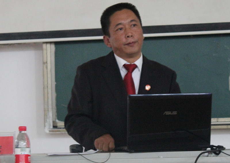 为传播法治精神,弘扬法治理念,实施法官进校园行动计划,2015年10月20日下午,政法学院邀请安顺市中级人民法院刑二庭庭长、副调研员陈佳宏法官在学校新教学楼A11教室作“法律的生命在于经验”的专题讲座。政法学院党总支书记、院长徐忠,政法学院法学教师以及2014、2015级思想政治教育专业法治教育方向全体同学共160余人听取讲座。讲座由政法学院法学教研室主任邓肄博士主持。