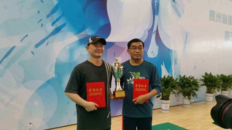 厅级干部组男子双打冠军教育厅副厅长黄健(右)、安顺学院院长刘雷(左)