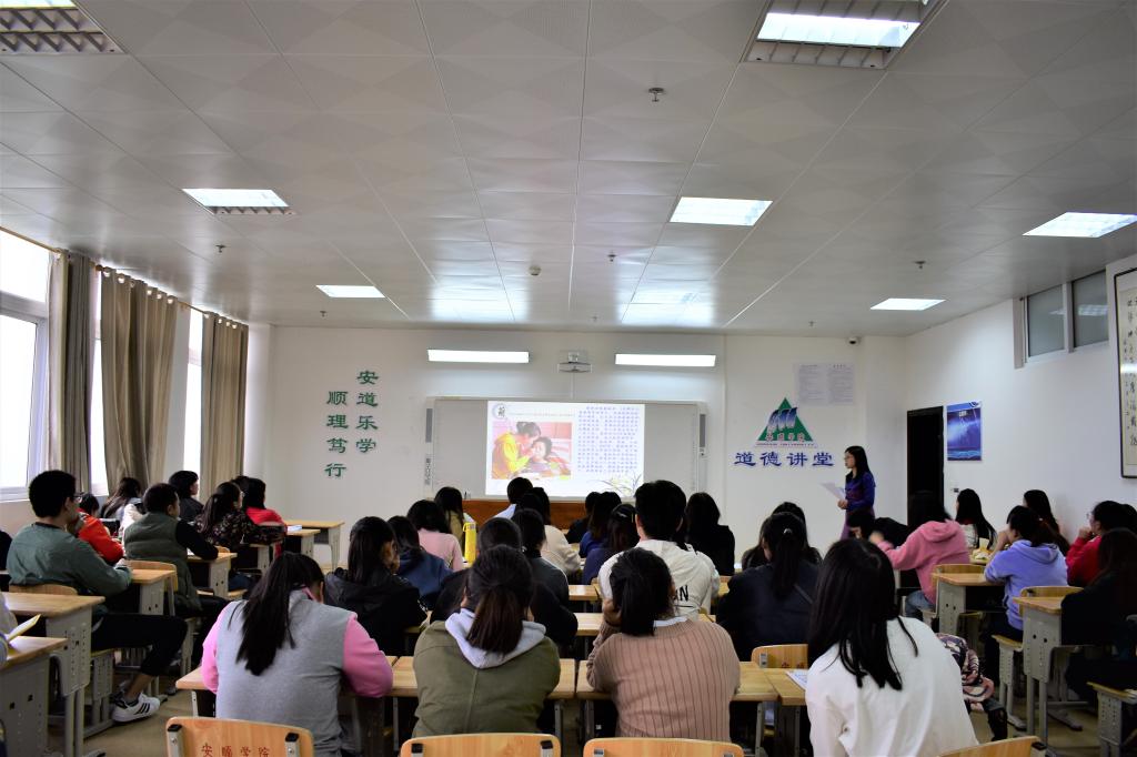 5月6日下午,安顺学院“弘扬社会主义核心价值观 传承道德精神”专题讲座在学校道德讲堂举行。教育科学学院院办副主任刘顺华主讲,教育科学学院学生听讲。