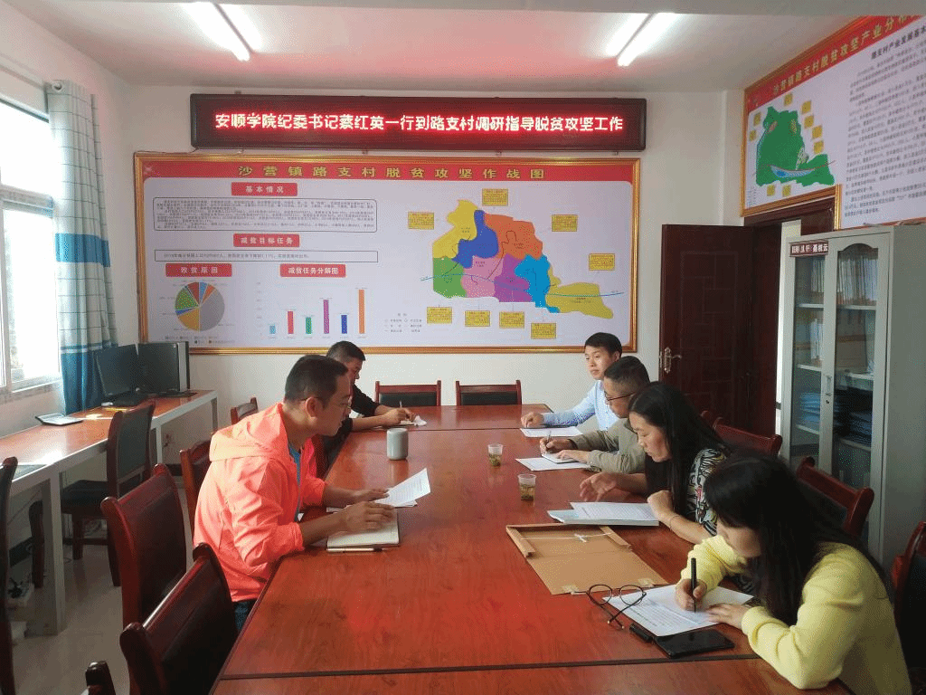 2019年6月18日上午,安顺学院纪委书记蔡红英、纪委副书记柏平一行6人到路支村调研指导脱贫攻坚工作并召开座谈会。