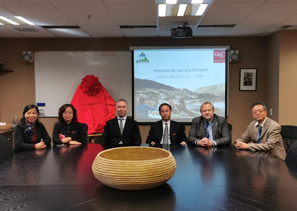 罗荣彬书记一行(左四)与皇后镇旅游学院校领导座谈