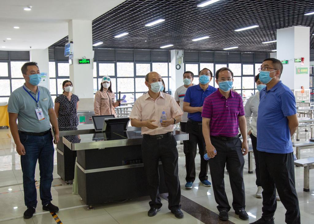 黄健一行实地查看了学校校门、食堂、学生宿舍等区域疫情防控措施落实情况,详细了解教师反岗、毕业生返校、师生健康状况摸排、食堂用餐、开学复课准备等情况。听取相关部门负责人工作汇报后,黄健一行对我校的疫情防控有力、有序、有效,复学复课科学统筹推进给予充分肯定,并提出指导性意见。