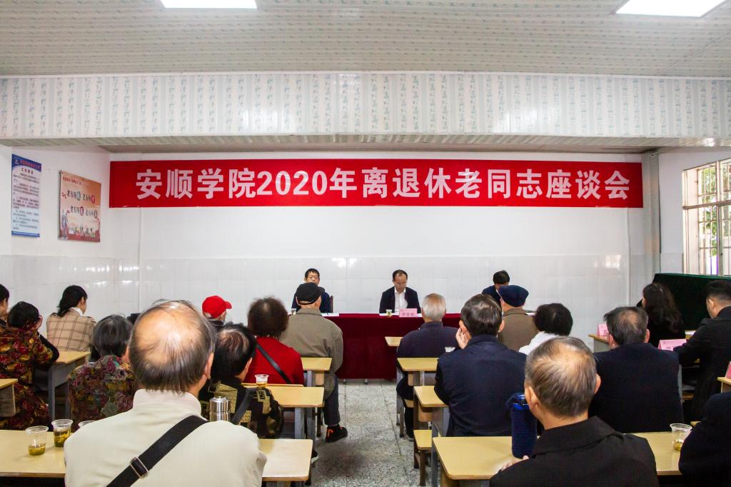 2020年9月30日,安顺学院2020年离退休老同志座谈会在离退休干部工作处活动室召开。党委书记罗荣彬、校长陈坤云、党委副书记陶文彩,党政办公室、组织部、宣传部、人事处、离退休干部工作处主要负责人及原校级领导、离退休党员、离退休协会理事、离退休老同志代表参加座谈会。会议由陶文彩主持。