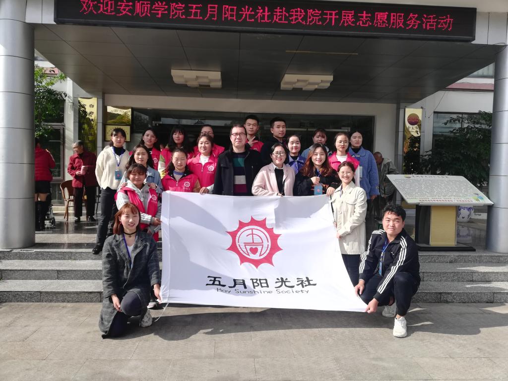 安顺学院辅导员崔亚飞(中)带领学生赴敬老院开展志愿服务活动