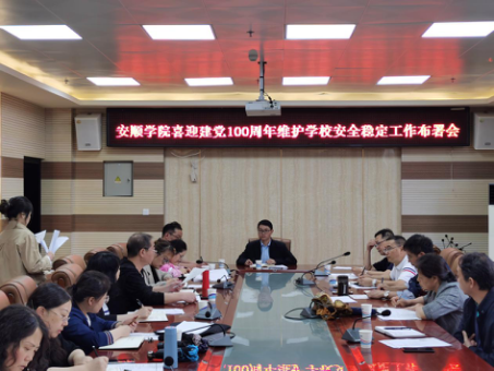 为贯彻落实全省教育系统喜迎建党100周年维护学校安全稳定工作部署会精神,提高校园安全管理工作水平,增强师生安全防范意识,积极响应“6月安全生产月活动”精神。6月10日上午,安顺学院召开喜迎建党100年维护学校安全稳定工作部署会,安顺学院副校长张来出席并主持会议。各二级学院、职能部门负责人参加会议