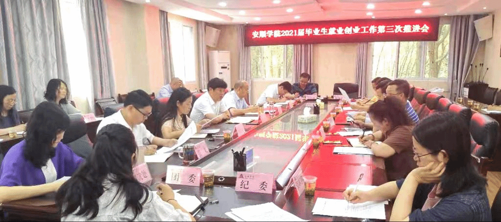 6月17日,安顺学院在行政楼二楼会议室召开了2021届毕业生就业创业工作第三次推进会。安顺学院校长陈云坤、副校长郭本华、纪委书记蔡红英,副校长韦英、张来出席会议,相关职能部门负责人及各二级学院党政主要负责人、招就处全体工作人员参加会议。会议由陈云坤主持。