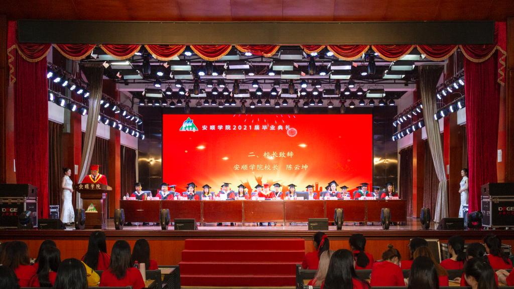 陈云坤校长代表学校向顺利完成学业的2693名毕业生表示衷心的祝贺,并以《默默耕耘静待花开》为题,深情寄语2021届毕业生。他说,今天是同学们大学四年青春和成长的最好见证,同时,四年来,同学们也是安顺学院成长的见证者,见证了学校办学条件得到根本改善、见证了“质量立校”等战略取得丰硕成果。陈云坤校长对2021届毕业生寄语三点希望:希望同学们奋发向上,拒绝“躺平”,要在最美年华里奋发向上,为梦而战,为时代发展贡献自己的应有之力;希望同学们甘于平凡,不甘平庸,要在平凡中承担起实现中华民族伟大复兴“中国梦”的责任与担当;希望同学们向美向善,坚守初心,要始终不忘初心,眼眸有星辰,心中有山海,以梦为马,不负韶华。