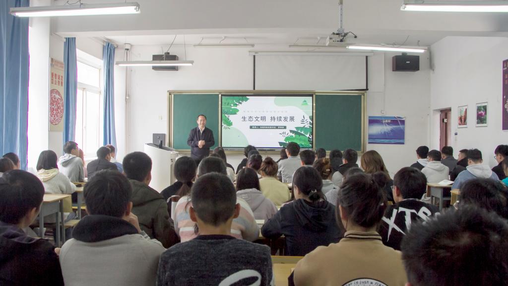 生态文明建设是一项关乎人民福祉、民族未来的系统工程,教育是其重要组成部分,中央和贵州省都极为重视生态文明教育工作,安顺学院为进一步贯彻和落实《中共中央国务院关于加快推进生态文明建设的意见》和《贵州省生态文明建设促进条例》,10月19日下午,安顺学院党委书记罗荣彬为资环学院2019级环境工程班学生上了一节有意义的生态文明教育专题课。