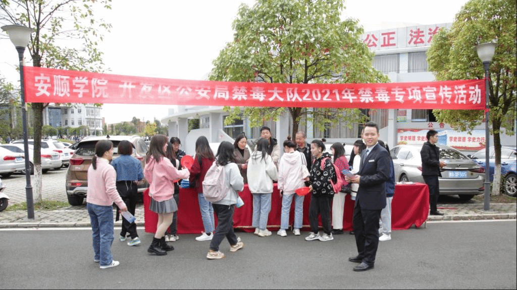 为认真学习贯彻习近平总书记关于禁毒工作重要指示精神,坚决彻底把禁毒工作进行下去,打好禁毒人民战争,进一步加强校园禁毒宣传力度,提高师生禁毒教育知识,增强师生毒品预防意识,推动我校安全工作不断取得新成效。2021年11月4日下午,安顺市公安局开发区分局禁毒大队到我校以“健康人生,绿色无毒”为主题开展禁毒教育专项宣传活动。安顺学院党委委员、副校长殷红敏出席活动。