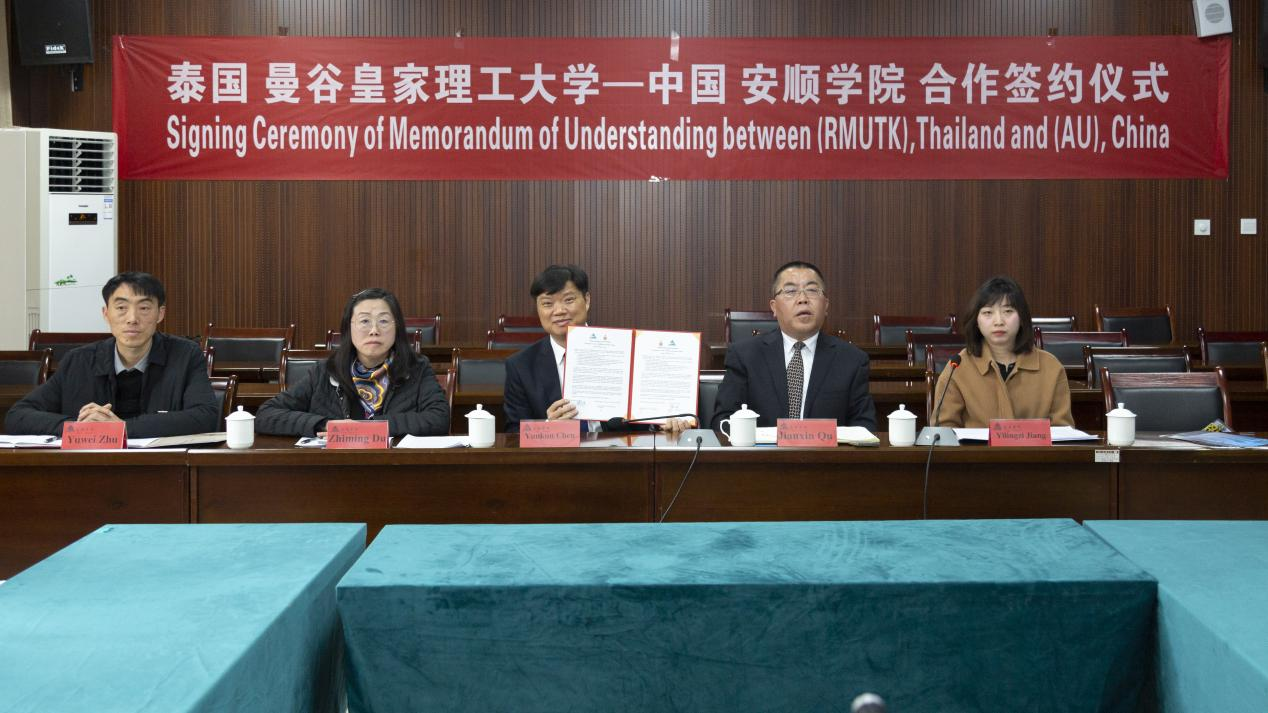 12月8日,安顺学院与泰国曼谷皇家理工大学以视频方式签署框架合作协议,安顺学院校长陈云坤、曼谷皇家理工大学校长皮猜出席签约仪式。