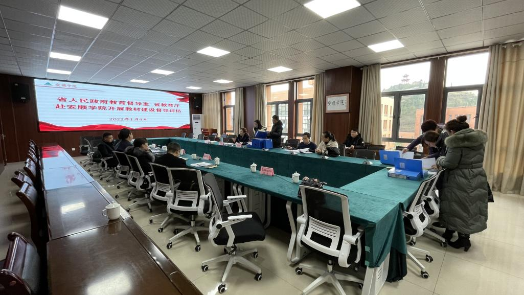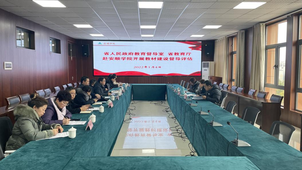 2022年1月4日下午,省人民政府教育督导室 省教育厅到安顺学院开展教材建设督导评估工作,督导评估组以贵阳学院党委副书记焦艳为组长,贵阳幼儿师范高等专科学校教务处处长刘黎、省教育厅宣传处干部惠才贤为组员。