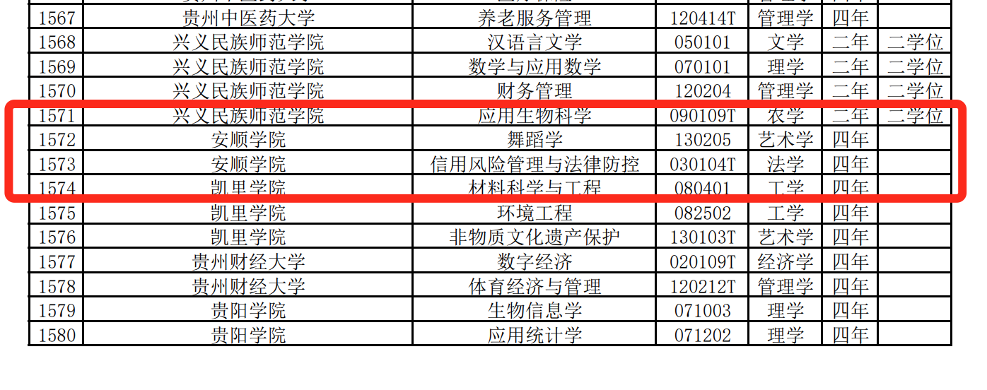 近年来,安顺学院结合学科专业优势与办学特色,主动布局,积极推进“四新”专业建设。新增本科专业的获批,使我校学科专业结构更加趋于科学合理,学科专业体系更加完备,涵盖工学、理学、艺术学、管理学、教育学、文学、法学等学科门类。未来安顺学院将不断健全需求导向的专业结构调整机制,进一步完善新专业人才培养方案,加强师资队伍和教学软硬件条件建设,不断提高专业建设质量和水平,对接新兴学科与社会新需求,改造升级传统专业内涵,提升服务国家战略和区域经济社会发展的能力,培养更多适应国家战略、产业需求、未来发展的一流本科人才。(宣传部:李尧睿)