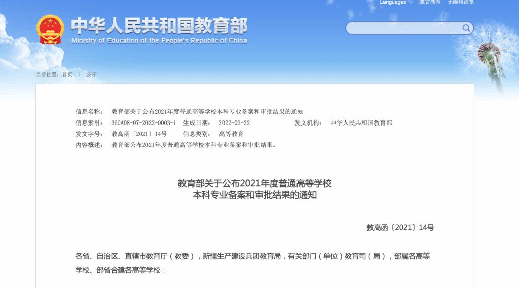 近日,教育部公布了2021年度普通高等学校本科专业备案和审批结果,新增1961个专业点、撤销804个专业点,31种新专业列入《普通高等学校本科专业目录》。我校申请的两个备案专业“舞蹈学”“信用风险管理与法律防控”获批招生。