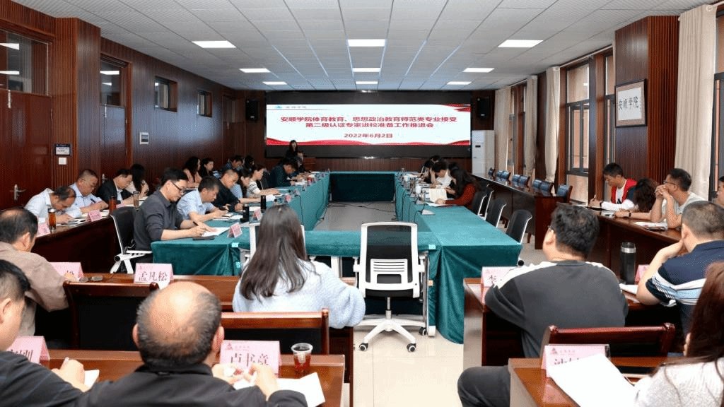 2022年6月2日上午,安顺学院体育教育、思想政治教育师范类专业接受第二级认证专家进校准备工作推进会在安道楼5楼第一会议室召开,学校领导班子成员、迎评工作办公室全体成员以及9个工作组的组长和副组长参加会议。会议由安顺学院校长陈云坤主持。