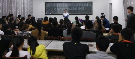 10月16日晚,艺术学院开展了 以“深入开展培育和践行社会主义核心价值观”为主题的朗诵比赛。艺术学院党总支书记蒋晓昀、辅导员付善莉等老师担任比赛评委,100余名同学观看了比赛。