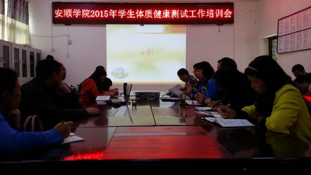培训会上,邓文红院长强调了本次培训的意义、目的、要求,对2015年《国家学生体质健康标准》的数据上报、资料整合作了详细的解读。本次会议,让教师们统一了认识,明确了工作职责,为安顺学院2015年学生体质健康测试工作提供了更加有力的保障。(体育学院 田宇)