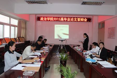 5月5日,政法学院2015届毕业生毕业论文第一批答辩活动在政法学院会议室开展。政法学院党总支书记徐忠,政法学院罗宪志、刘永华、苗青青、彭建斌等老师参与论文答辩工作,2011级思想政治教育本科班11名同学参加答辩。