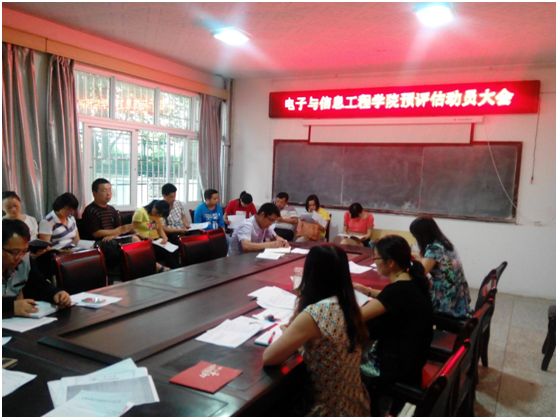 7月22日下午,电子与信息工程学院在一楼会议室召开本科教学工作合格评估预评估动员大会。电子与信息工程学院全体教职工参加了会议。会议由周士芸院长主持。
