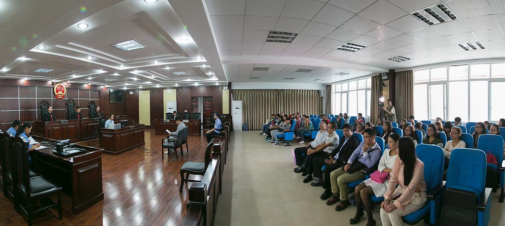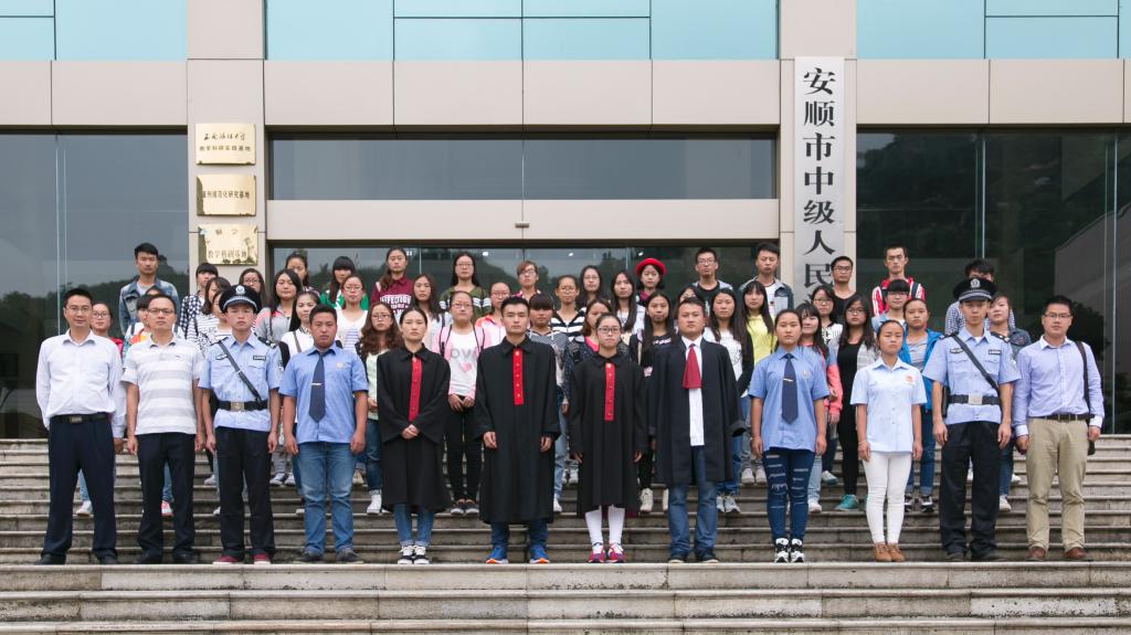 2015年8月25日下午,在安顺市中级人民法院中型法庭,安顺学院政法学院胡必坚、靳鑫、潘继材、张阳等老师组织2014级思想政治教育(法治教育方向)专业学生50多人拍摄模拟法庭宣传片。
