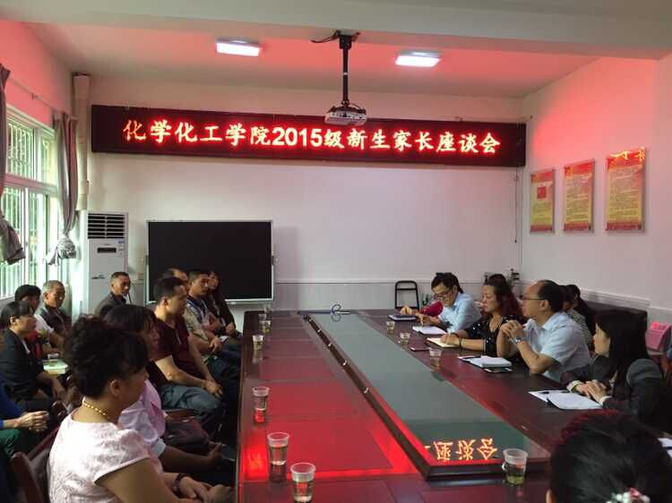 2015年9月6日下午2:30,化学化工学院2015级新生家长座谈会在学院会议室举行。会议由张玉波副院长主持,化学化工学院党总支书记杨莉莉、院长李琳、副院长张红霞、新生班级任课老师、班主任及辅导员参加了此次座谈会。