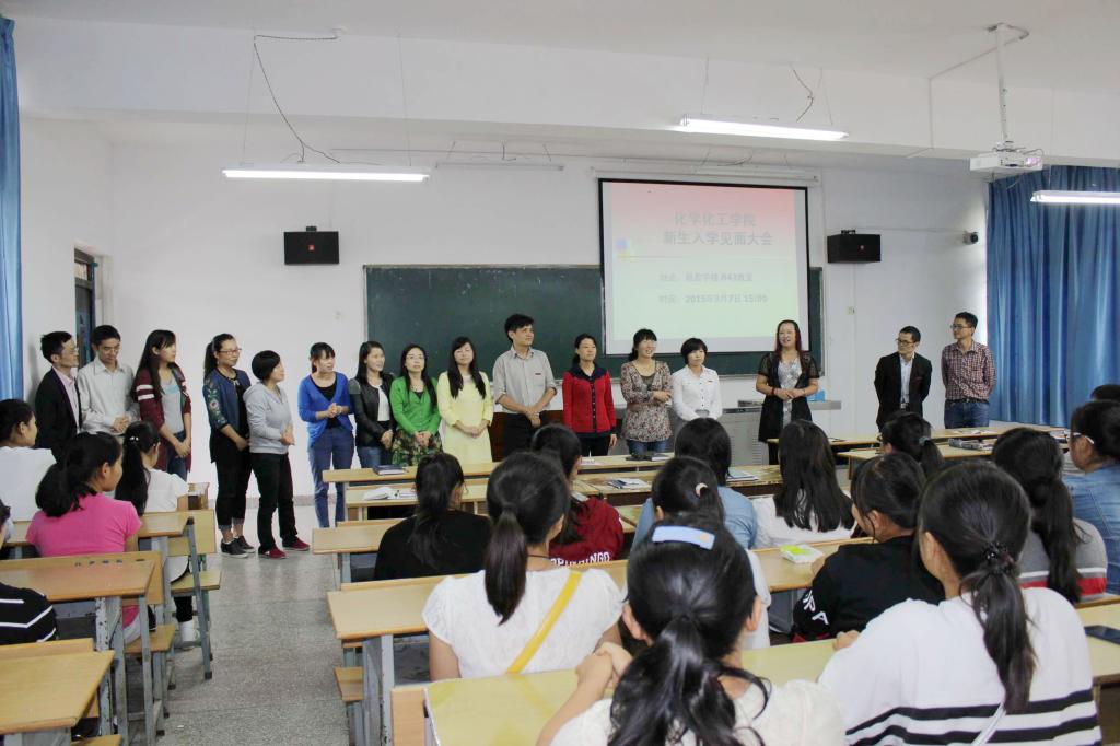 为了让刚离开父母踏入大学校园的2015级新生尽快融入安顺学院化学化工学院的大家庭,2015年9月7日下午三点,化学化工学院在新教学楼0B43举办了2015级师生见面会,会议由化学化工学院党总支书记杨莉莉主持,副院长张红霞、张玉波、新生班级任课教师、班主任及辅导员等共计17位老师参加了会议。