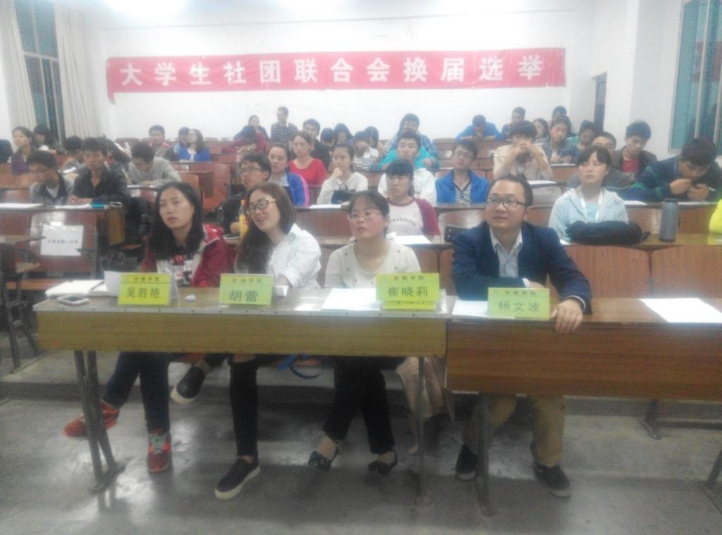 主持人宣读完换届方案后,选举正式开始。四名候选人员分别上台满怀激情地进行竞选演说,表达自己对所竞选职位的热爱及对今后工作的美好展望。演讲结束,在场同学纷纷投出自己神圣的一票。经过统计票数最终选举产生的主席团团干为:社团联主席刘宇玲,副主席陈沈、陈胜男。
