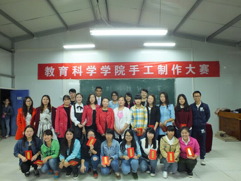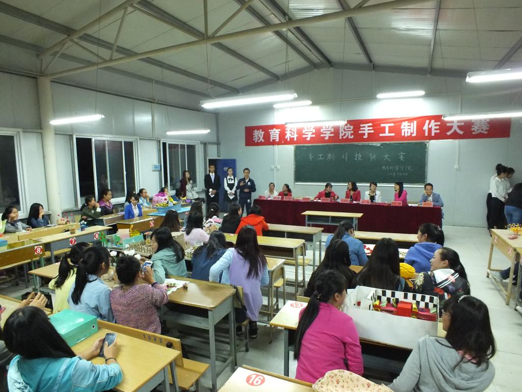 2015年9月26日,教育科学学院在学校B52教室举办了学生专业技能——手工制作竞赛。竞赛的举办旨在提升学前教育学生专业实践技能。竞赛邀请王丽环、杨爽等5名学前教育专业教师作为竞赛评委。教育科学学院学生科郭雯、团总支书记柴洁余、副书记何飞组织观看比赛。