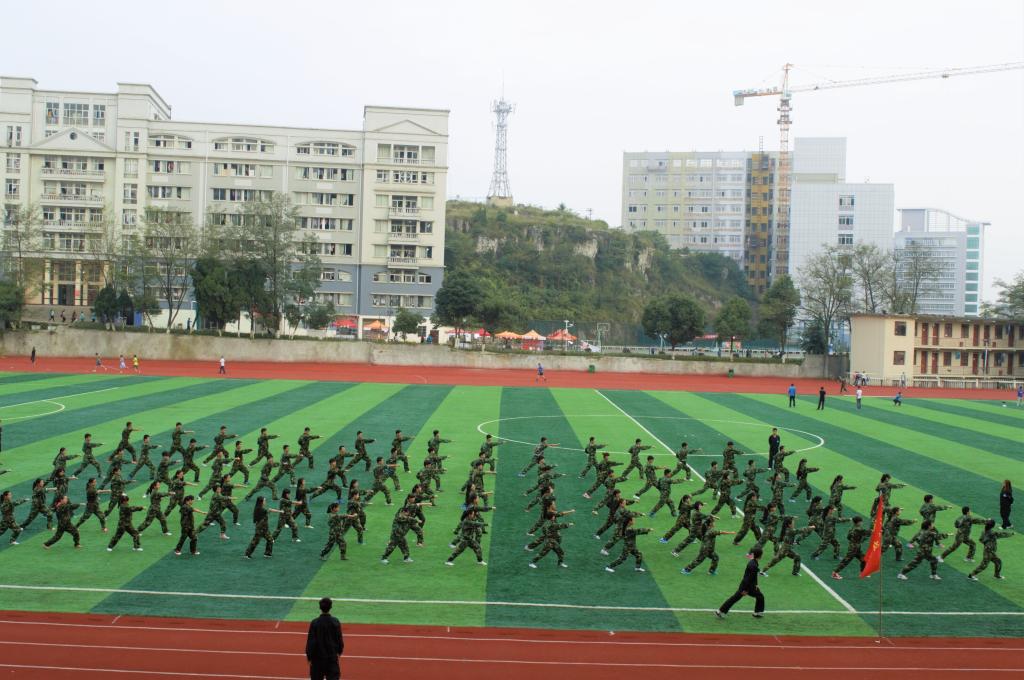 “一二一、一二一……”一阵阵整齐有力的声音从田径场传来,划破了安顺学院宁静的早晨,那是护校队晨跑的口号声。见习队员们身穿绿色军训服,迎着朝阳,在鲜红的塑胶道上整齐地跑着,整个画面构成了安顺学院一道亮丽的风景。队员们晨跑结束后便开始打五步拳,由于不熟练,许多见习队员动作不标准,老队员便耐心地一个个矫正。