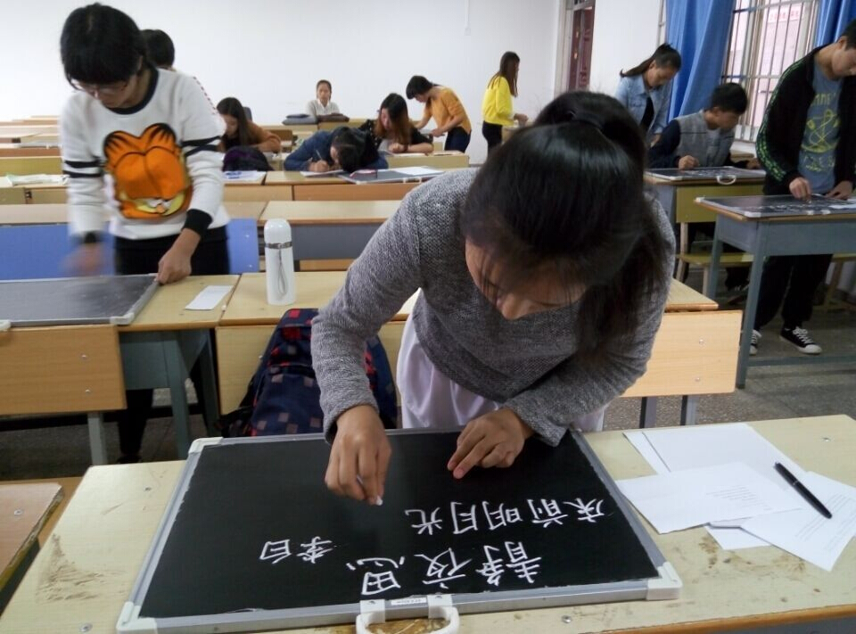 为了提高外国语学院学生两笔(钢笔、粉笔)字水平,外国语学院于2015年9月29日下午在新教学楼举办两笔字比赛。