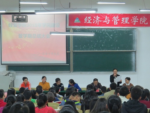 为加强经管学院学生思想政治教育、安全教育管理、学风建设及迎评促建工作,切实提高我院教育教学质量,引导学生做好大学生活、学习规划,展现积极昂扬的经管学子风采,10月9日晚,经管学院在A12教室开展“经管学院2015年思想政治教育暨学生工作大会”活动。经管学院党总支书记、院长赵伶俐,辅导员、各班班主任及经管学院全体学生参加大会。大会由经管学院专职辅导员付秀芸老师主持。