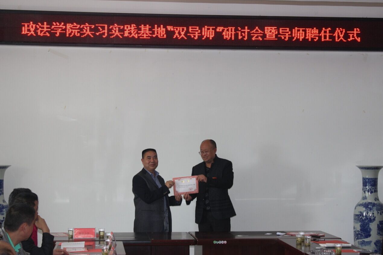 政法学院党总支书记、院长徐忠为各实习基地指导教师颁发聘任证书
