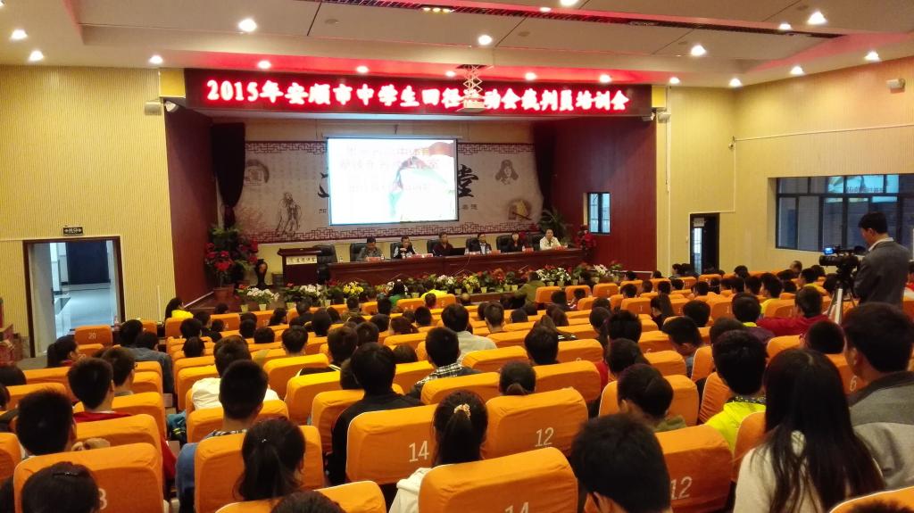 2015年10月27日,体育学院师生参加在安顺市二中举行为期一天的2015年安顺市中小学田径运动会裁判员培训会,此次培训会由贵州省高中体育名师蔡臻东工作室承办。国家级裁判、贵州师范大学体育学院孟刚教授、安顺学院体育学院院长邓文红教授、贵州省高中体育名师蔡臻东、安顺二中党委书记、校长郑晓鑫等出席了本次培训会。