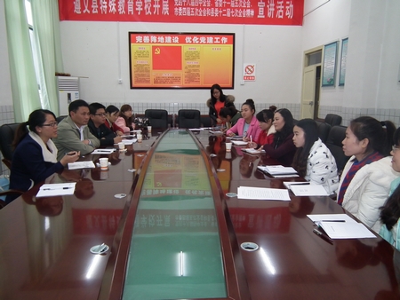 为加强特教学院与实习基地的联系,进一步了解实习生在实习基地和特校的实习生活情况,11月17日-20日,特教学院副院长李勇教授与肖菊英、贾金玲副科长,教研室王辉主任及杨小林老师一行五人到六盘水市和遵义市各特殊教育学校及启智学校看望实习学生,并与实习学校领导和实习生亲切座谈。六盘水特校副校长舒阔、彭才主任,遵义市特校赵石、余贞文副校长及李念兴主任,遵义县特校陈桂兰校长,遵义红花岗区启智学校周兴露副校长等热情接待了我院领导和老师。