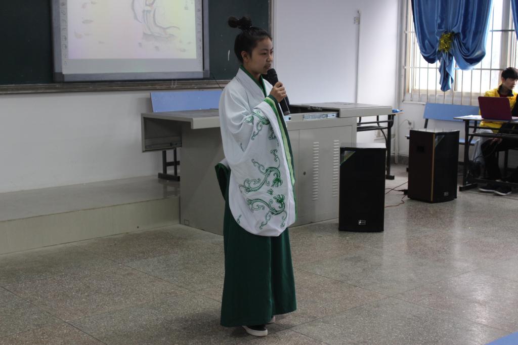 2015级社会工作专业的吴文燕同学身着汉服朗诵《离骚》