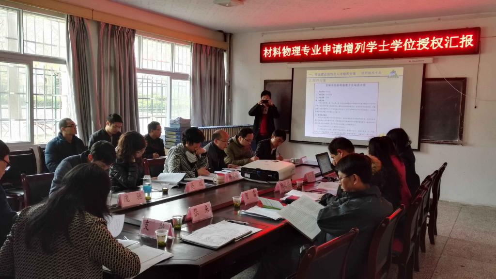 为贯彻落实国务院学位委员会、教育部、省教育厅关于《中华人民共和国学位条例》和《贵州省人民政府学位委员会关于进一步加强学士学位管理工作的通知》有关精神和要求,严格根据《关于组织开展2016年本科专业学士学位授权增列审核工作的通知》做好电信学院材料物理专业。3月31日下午,电子信息工程学院在安顺学院一楼会议室召开了材料物理专业学士学位授权增列审核专家实地评估工作汇报会。