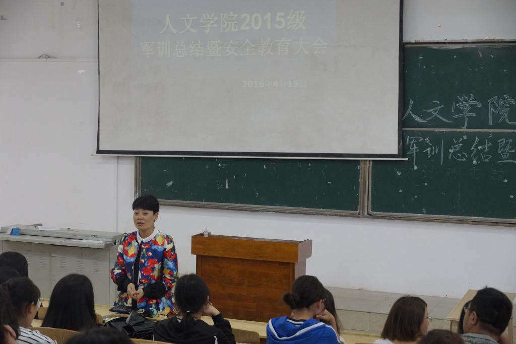 为了切实加强学校安全管理和教育,进一步提高学生安全防范意识,保障师生人身财产安全,2016年4月15日下午,安顺学院人文学院2015级新生军训教育总结大会在新教楼A11教室顺利举行。本次会议由人文学院辅导员胡德富主持,人文学院学生党委书记胡赤兵、辅导员周开媛到场辅讲。参与人员主要是人文学院2015级军训学生。