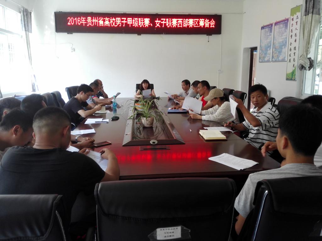 2016年6月2日下午,2016年贵州省高校男子甲级联赛、女子联赛西部赛区筹备会在安顺学院体育学院会议室召开。体育学院院长邓文红及各工作组成员参加会议。会议由邓文红院长主持。