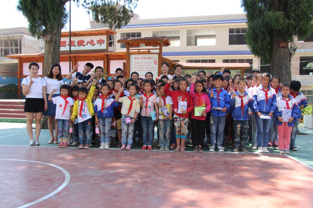 安顺学院社会工作协会学生与龙宫镇蔡官小学学生合影