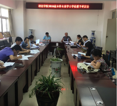 为做好我院2016届本科毕业生学士学位授予工作,保证学士学位授予质量,6月6日下午,政法学院在学院办公室召开2016届思想政治教育与社会工作专业学士学位授予评定会。政法学院党总支书记、院长徐忠,副院长余治平及学院学位评定小组成员参加会议。会议由徐忠书记主持。