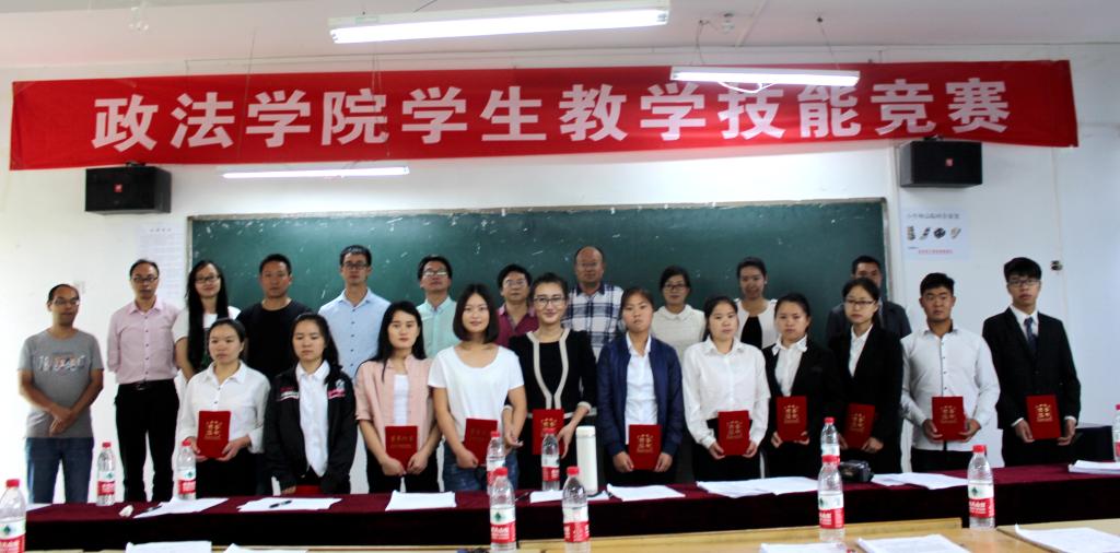 为进一步提升政法学院学生应具备的教师基本素养、职业发展潜质和教育教学实践能力,实现培养“合格教师”和“学习型教师”的目标,政法学院组织开展2016年上半年学生教学技能竞赛。6月25日上午,由全院6个班经过预赛各推选出2名同学在新教学楼B13教室进行决赛,安顺学院党委宣传部部长蔡少平,政法学院党总支书记院长徐忠、副院长余治平及政法学院教师担任评委,政法学院2013级、2014级、2015级学生观摩比赛。