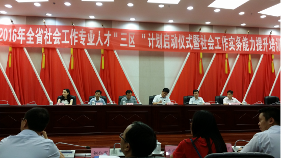 2016年边远贫困地区、边疆民族地区和革命老区(以下简称“三区”)社会工作专业人才支持计划启动仪式暨社会工作实务能力培训班现场