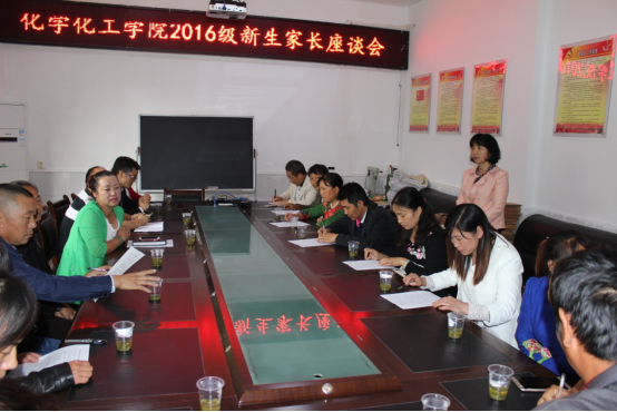 2016年9月1日下午,化学化工学院2016级新生家长座谈会在化学化工学院会议室举行。化学化工学院院长李琳,副院长张玉波、张红霞,新生班主任,全体辅导员及部分教师参加了此次座谈会。会议由杨莉莉书记主持。