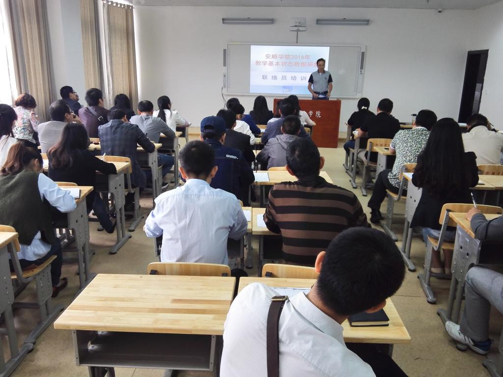 2016年9月19日,安顺学院2016年教学基本状态数据采集工作牵头部门和各教学单位联络员培训会在特教大楼七楼召开,评建办全体专职人员、党政办等牵头部门联络员、校属各学院(教学部)联络员、纪委联络员等40余名同志参加了培训会。会议由教务处副处长王罡主持。