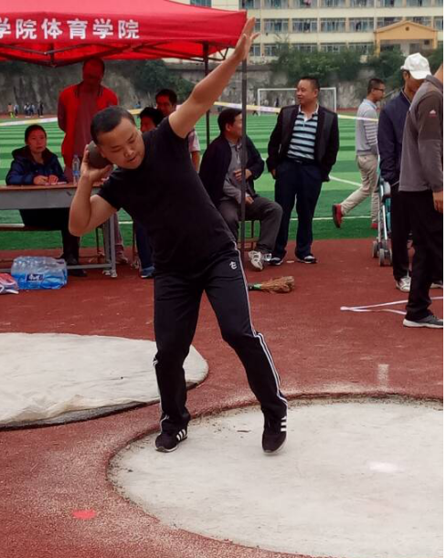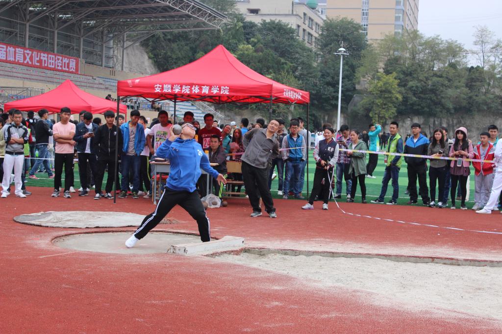 15级社会工作班谢元东获得铅球比赛第一名的好成绩