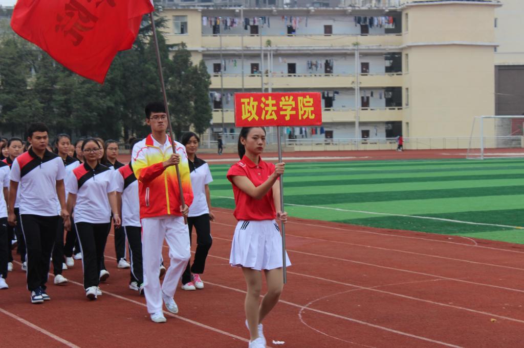 2016年10月14日上午,政法学院48名运动员组成代表队参加安顺学院第二届运动会开幕式方队表演,运动员代表队以“厚德崇法 包容笃行”院训为口号,展现出政法学院良好的精神面貌和积极向上的青春活力。
