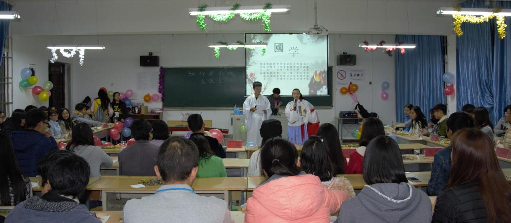 活动节目精彩纷呈,知行国学社以柔美的开场舞《礼仪之邦》拉开活动帷幕,使大家感受中国文化的源远流长、博大精深;武术协会表演的《双截棍》收放自如、刚劲迅猛,招式变化无穷;手语爱心协会带来的歌曲《爱有你我》饱含温情,舞蹈《断桥残雪》舞姿柔美,演绎深情;王楠老师用巴乌演奏的乐曲优美动听,赢得同学们阵阵热烈的掌声,将活动推向高潮。互动环节,同学们积极参与诗词问答、成语竞赛等活动,现场气氛活跃。
