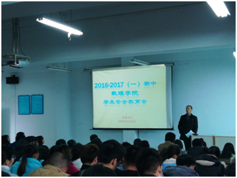 为切实抓好学生的各项管理工作和安全稳定工作,落实学校的各项教育管理要求,更好地管理育人,服务育人,保障学生顺利完成本学期各项学习任务,营造和谐、积极、乐学、稳定的校园氛围,2016年11月7日(星期一)下午14点30分,数理学院在电教楼0941教室召开此次学生教育管理大会。 数理学院党政领导、各个科室负责人、各班级导师、班主任及14-16级学生参加了此次会议。