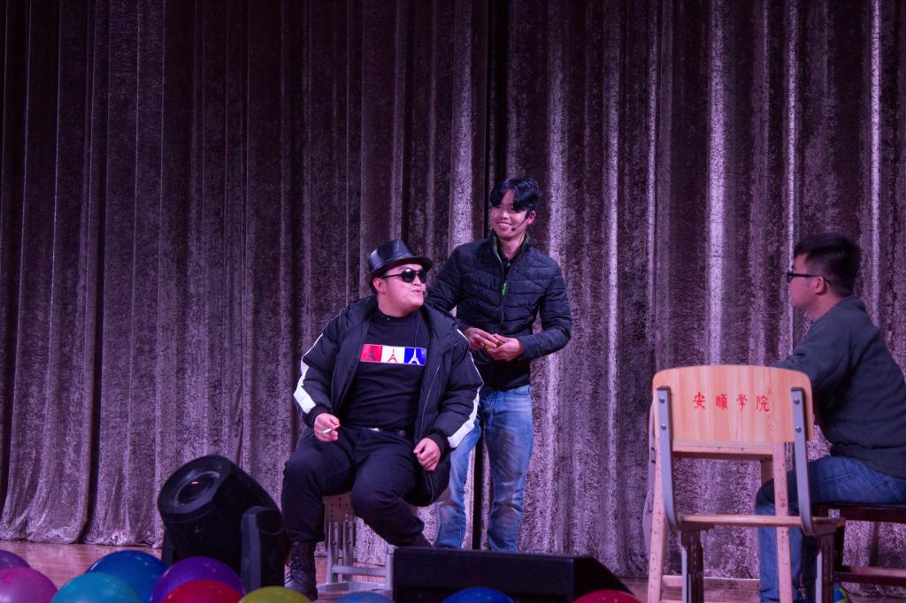 温馨与浪漫的华尔兹开场舞拉开了晚会的序幕,带动现场观众迅速融入到晚会轻松愉悦的氛围中。同学们精心准备的晚会节目形式丰富、内容新颖:富有民族特色的《走苗山》舞蹈;幽默搞笑的《迎新生》双簧;激情四射的《The het youth》舞蹈;温馨感人的《因为爱情》手语等。现场互动环节,同学们积极参与,气氛热烈。老师上台演唱《你是我的眼》,表演双截棍,更是将晚会气氛推向高潮,现场掌声雷动。晚会在充满活力的串烧表演中圆满落下帷幕。