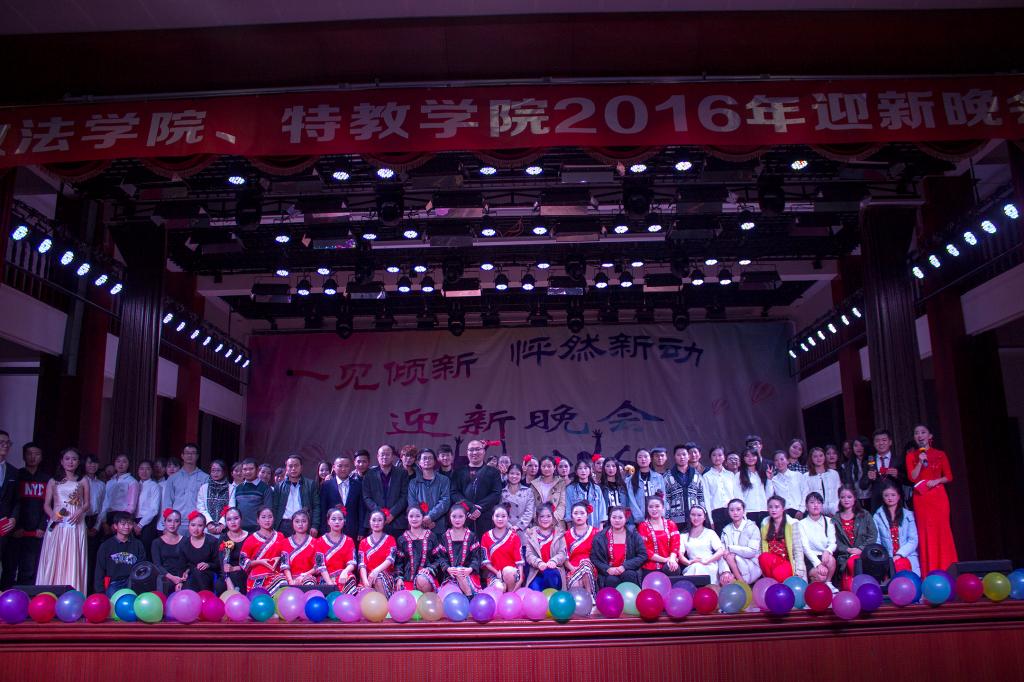 为迎接2016级新生,展现政法学院、特教学院莘莘学子的风采,11月15日晚,政法学院与特教学院团总支学生会在学校大礼堂联合举办“一见倾心,怦然心动”迎新晚会。政法学院党总支书记、院长徐忠,特教学院院长李镇译,政法学院、特教学院师生以及学校各学院学生代表参加迎新晚会。晚会由郭嘉颖、田晓庆等4位同学主持。