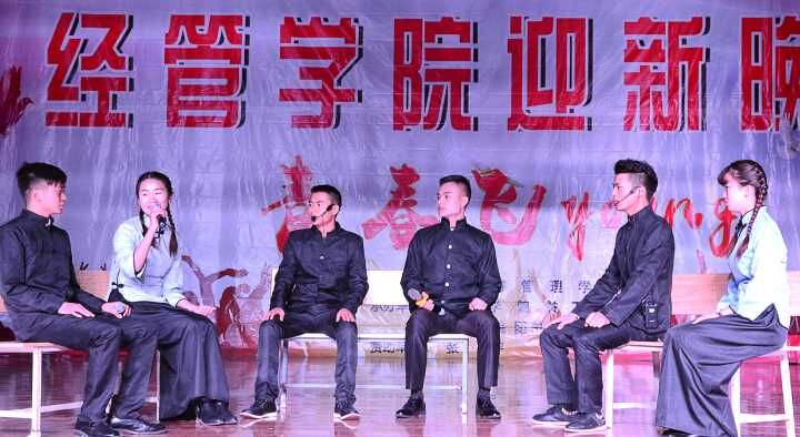 为迎接2016级新生的到来,展现我院学子风采,11月24晚,由经济与管理学院主办,张坪驾校赞助,经管学院关工委与经管学院团总支学生会共同承办的“青春飞young”迎新晚会在学校大礼堂举办。经济与管理学院党总支书记兼院长赵伶俐,辅导员桂楚、王典雪,学院2016级新生以及学校各学院、组织、社团学生代表观看迎新晚会。晚会由赵毅青蓝、蔡梦祠祎、陈莉薇、杨秀成主持。